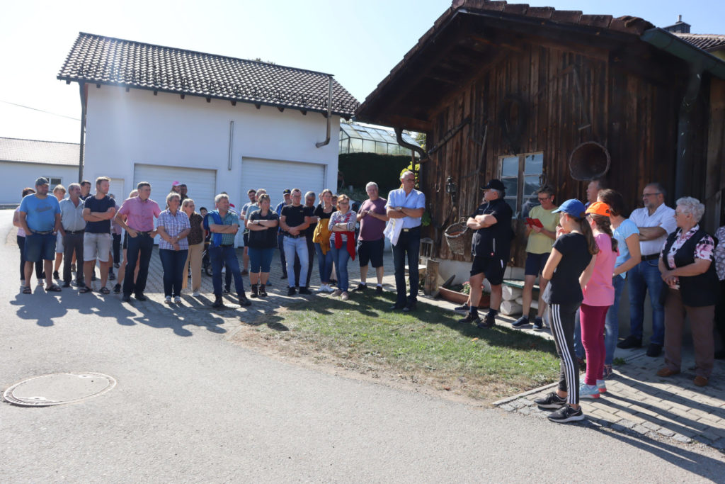 Als einmalige Chance diesen Stall von innen zu besichtigen, bezeichnete es der stellvertretende Vorsitzende der ILE Vorderer Bayerischer Wald, Thomas Schwarzfischer. “Diese Tür wird von uns sicher keiner mehr betreten, wenn erst einmal eingestallt wird!” Schwarzfischer war es auch, der mit dem Bauherrn in Verbindung trat und die Besichtigung vereinbarte. Der Zulauf, auch dank des tollen Wetters, war riesig. Bei über 110 Besucher hörte man zu zählen auf. Thomas Schwarzfischer, zugleich auch Zells Bürgermeister, dankte im Vorfeld der Besichtigung der Familie Heuberger für die freundliche Aufnahme: “Es ist nicht selbstverständlich, dass man Besucher auf den Hof lässt. Schließlich ist das so, wie wenn ich Fremde in mein Wohnzimmer lasse!”